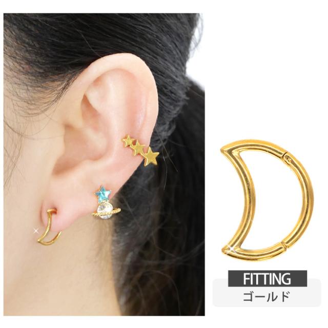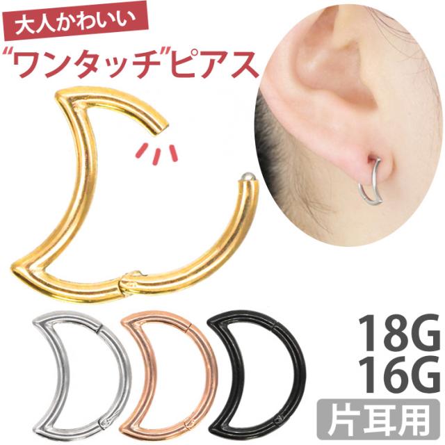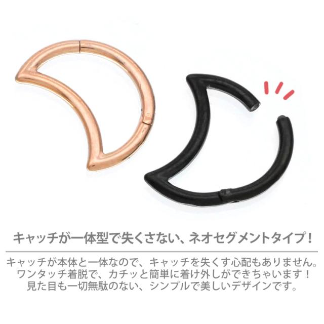ピアス 軟骨ピアス ボディピアス 18G 16G ワンタッチで装着 三日月モチーフのネオクレッセントセグメントリング 中折れ