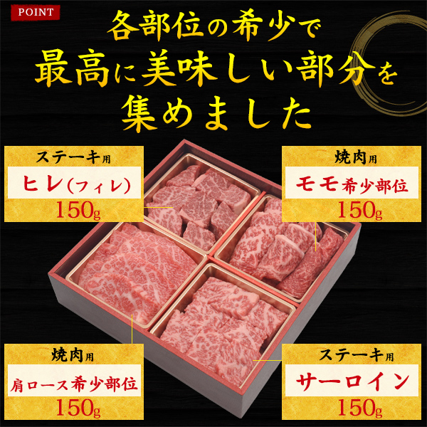 希少で最高に美味しい部位を集めたA5ランク「極4点セット」(600gの2個セット 合計1.2kg)