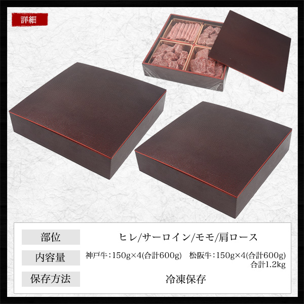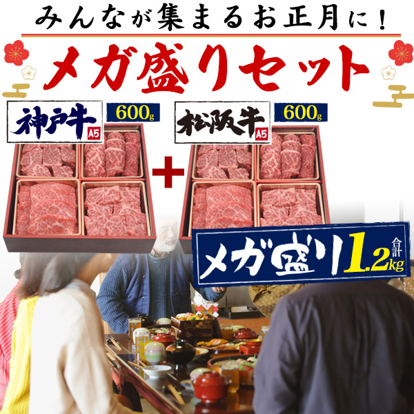 たっぷり合計1.2kgのメガ盛りセット!(神戸牛600g+松阪牛600gの2個セット)