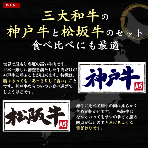 日本三大和牛の「神戸牛」と「松阪牛」のセット!