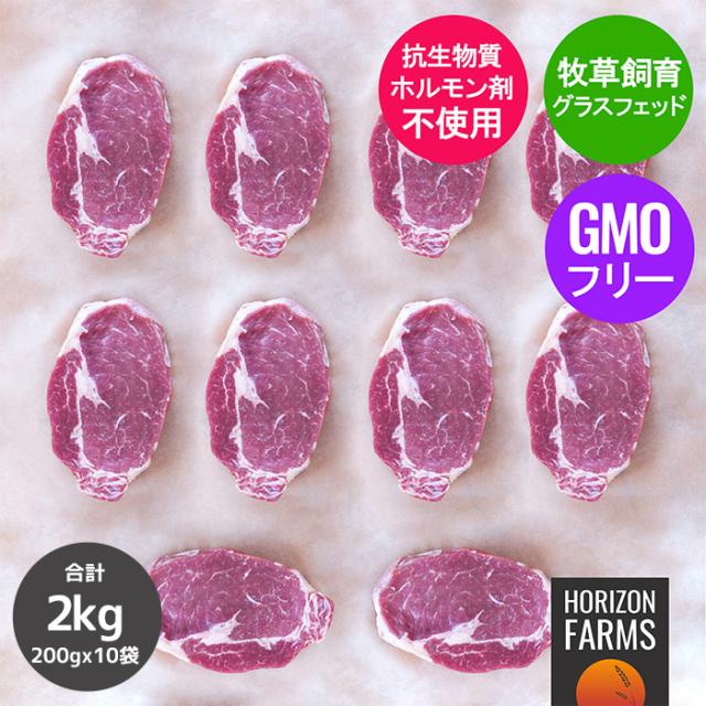 送料無料 ニュージーランド産 グラスフェッドビーフ 牛肉 リブロース ステーキ 200g x 10枚 セット 2kg 牧草牛 無農薬