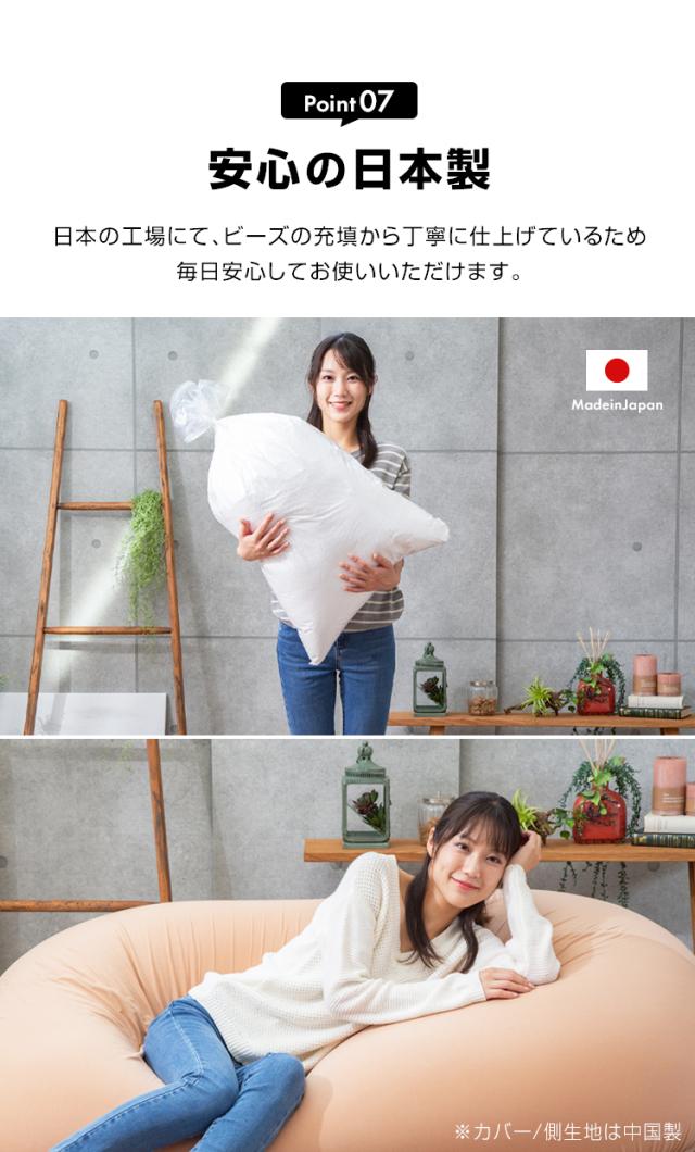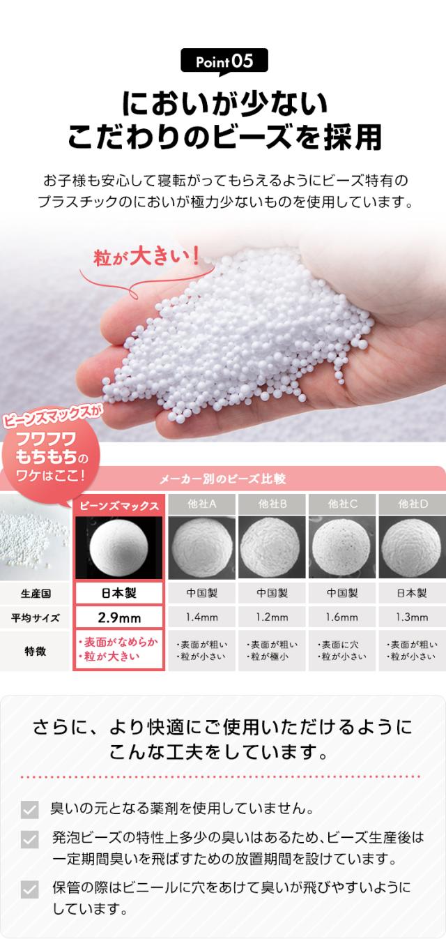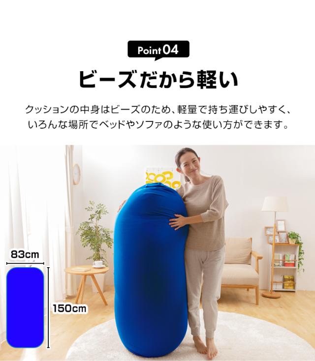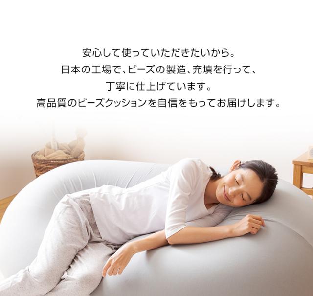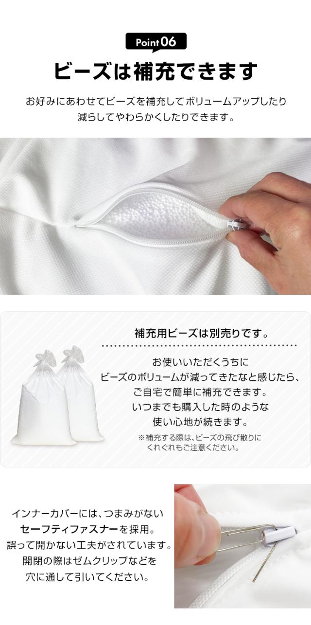 小さいビーズがたくさん入っているためどんな形にも変形し、程よい弾力で体全体を包み込むようなフィット感が特長です。
