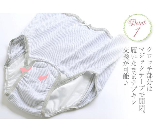「産褥ショーツ」は、クロッチ部分がマジックテープで簡単に開閉できるようになっています。