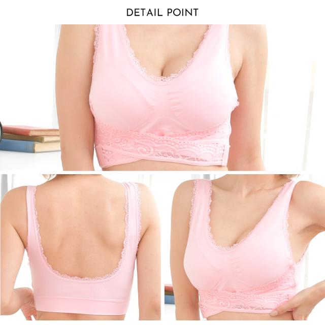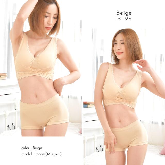 ノンワイヤー仕様でバストに食い込むこともないので普段の生活時だけでなく就寝時のナイトブラとしても安心してご使用いただけます。