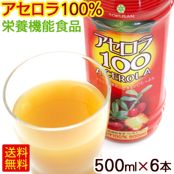 果汁100%アセロラジュース。送料無料500ml×6本セット。