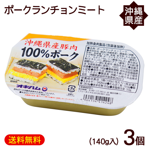 ポークランチョンミート 140g×3個 /沖縄県産豚肉 オキハム【M便】