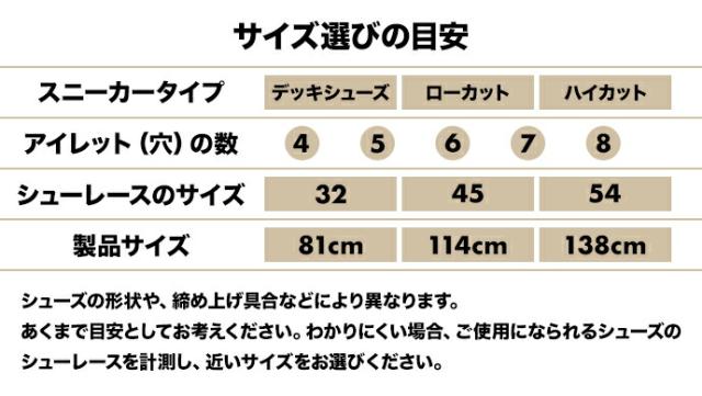 シューズサイズやアイレット(穴)の数に合わせてお選びください。