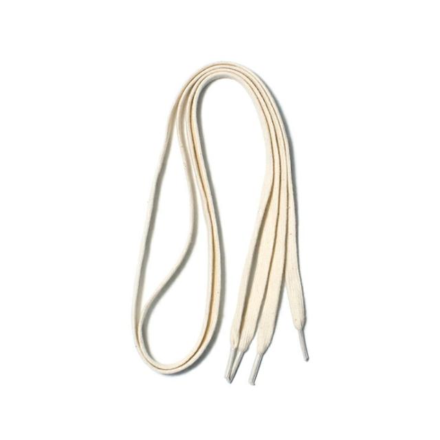 現行のスニーカーに付属しているシューレースは、化学繊維を使用したものがほとんどですが、コットン100%のシューレースに変更するだけで、ヴィンテージ感抜群の、落ち着いた雰囲気に。