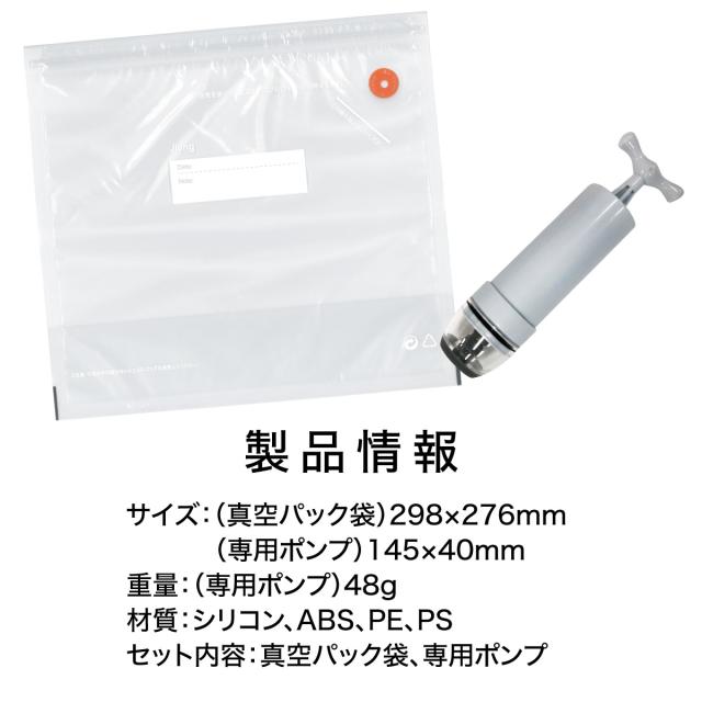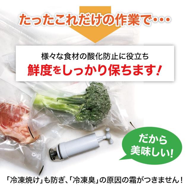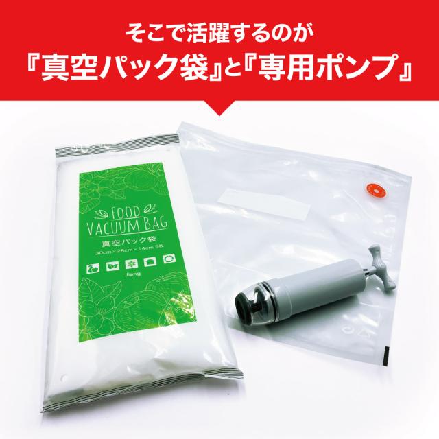 真空パック 袋 マチあり 5枚セット 専用ポンプ付 27.6×29.8cm×マチアリ 食品袋 密封袋 真空保存 再利用 キッチン用品 sinku-set5