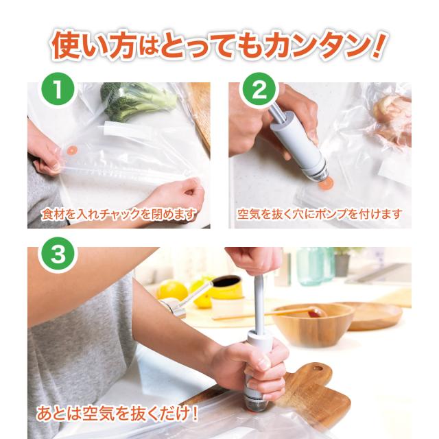 使い方は簡単で、空気を抜く穴にポンプを付けて空気を抜くだけです。