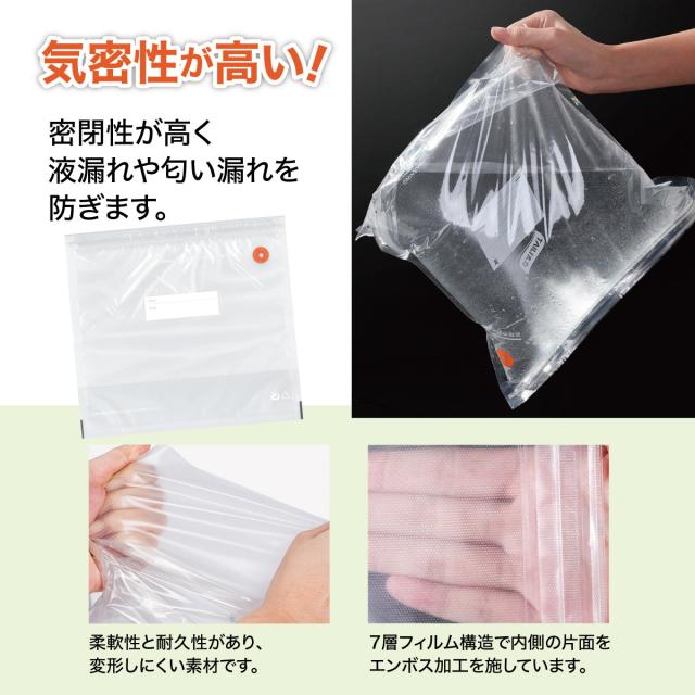 脱気性と洗いやすく丈夫なつくりになっています。また、密閉性が高く液漏れやニオイ漏れを防ぎます。