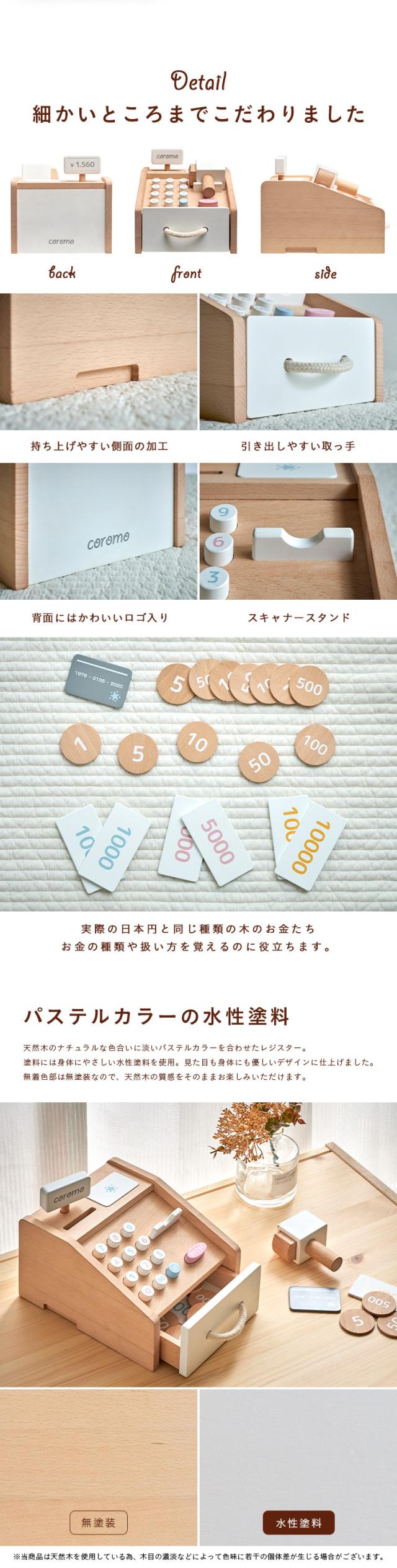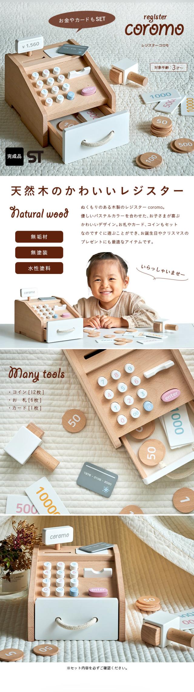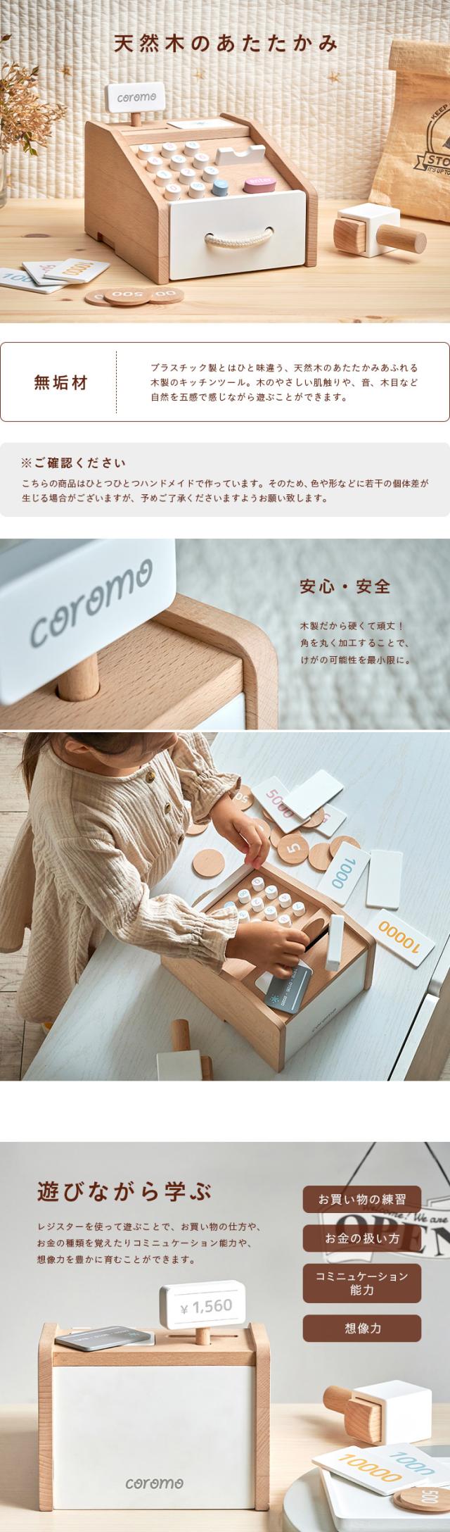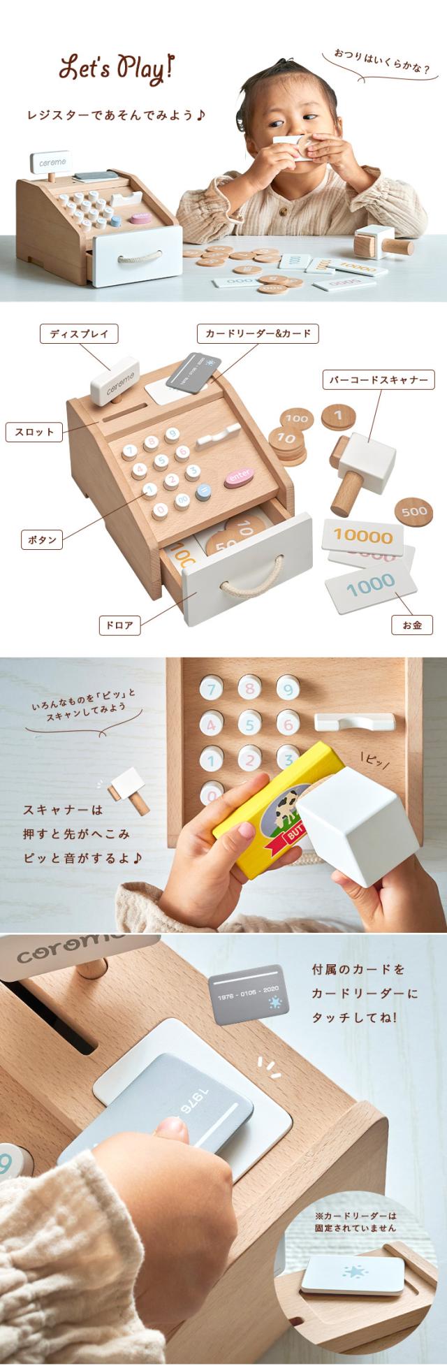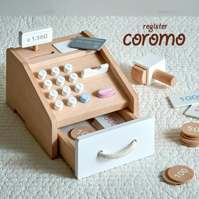 ラッピングセットプレゼント中!【完成品/天然木使用】レジスター coromo(コロモ) 木製 ままごと おままごと グッズ レジ お金 お札 コイン カード お店やさん かわいい お店屋さん ごっこ遊び 木のおもちゃ 知育玩具