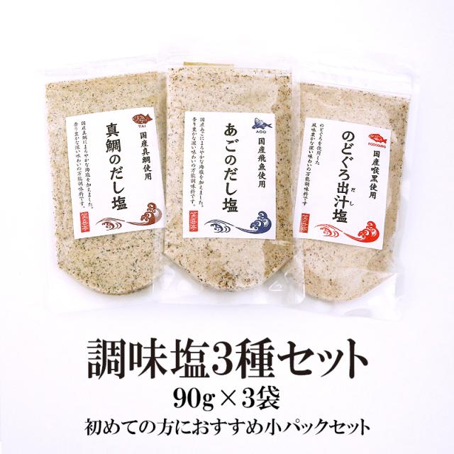 だし塩 出汁塩 調味塩3種 90g×3袋 まだい・のどぐろ・あご だし塩セット 送料無料 はぎの食品