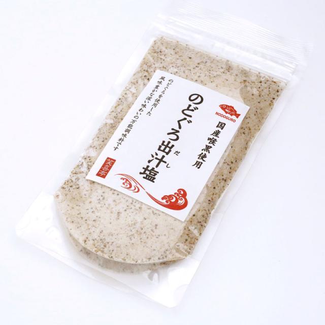 のどぐろ出汁塩…食塩(国内製造)、焼のどぐろだし顆粒(食塩、砂糖、焼のどぐろ粉末、その他)、いわし煮干粉末/調味料(アミノ酸等)、紅麹色素、(一部に大豆を含む)