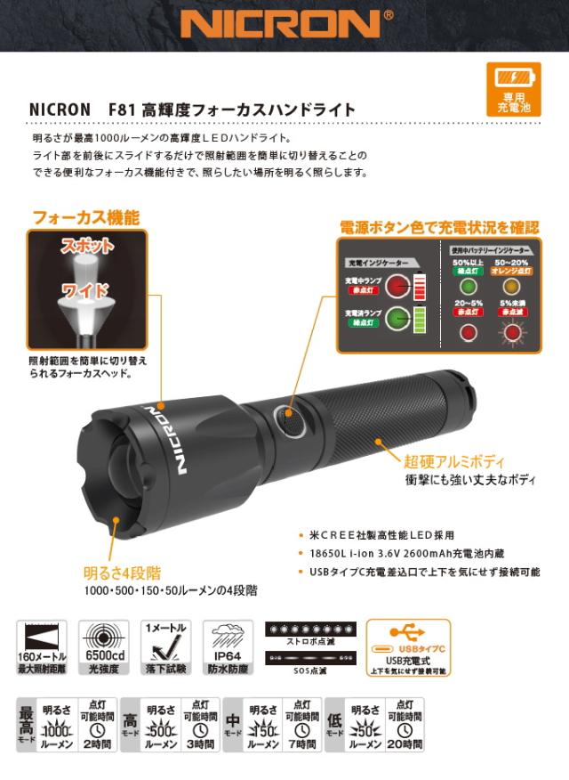 高輝度フォーカスLEDライト 1000LM 充電式 F81 送料無料 USB充電式 フォーカス機能 ライト アウトドア 整備 点検 作業