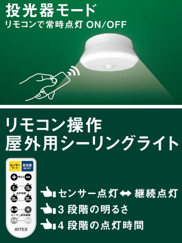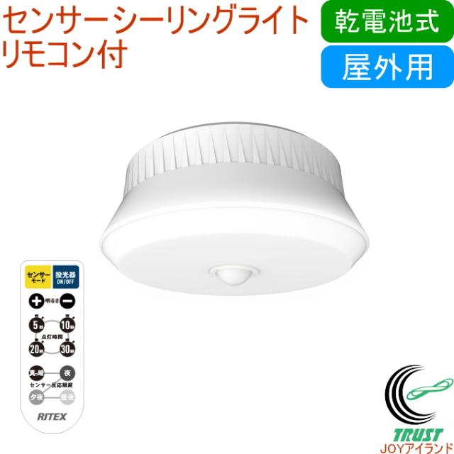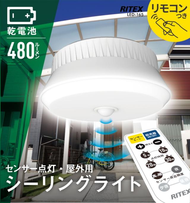 屋外用センサーシーリングライト リモコン付 LED-165 送料無料 屋外 乾電池式 リモコン付 自動点灯 LED センサー ライト シンプル 車庫 倉庫 カーポート