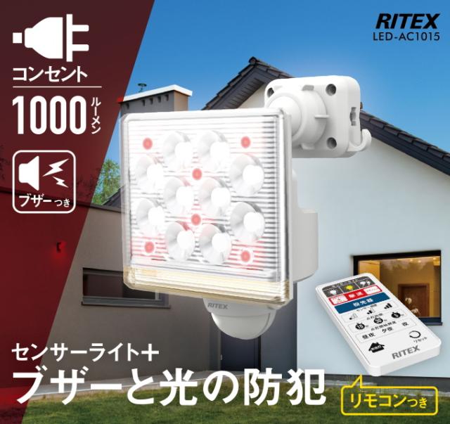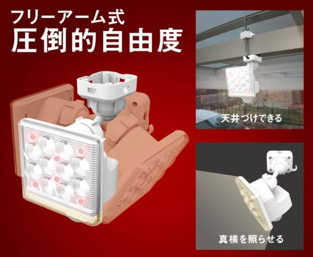 12W×1灯 フリーアーム式 LEDセンサーライト リモコン付 LED-AC1015 送料無料 屋内 屋外 コンセント式 遠隔操作 リモコン付 ブザー付 LED センサー ライト シンプル