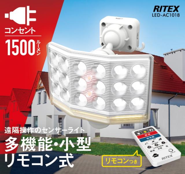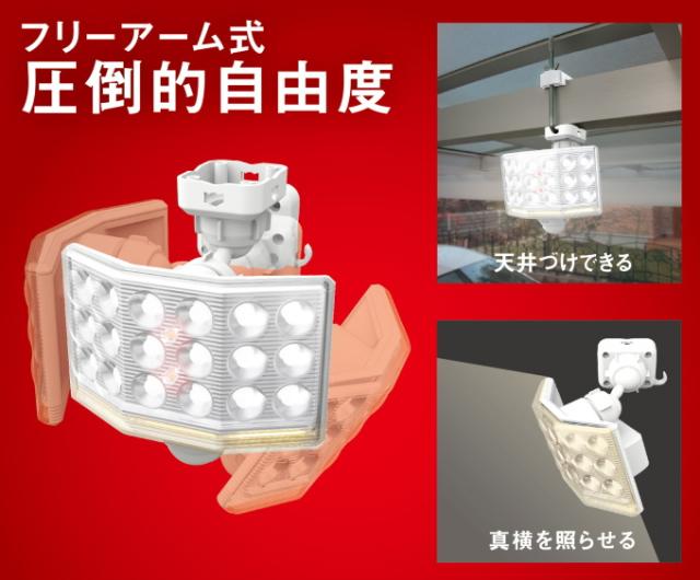 18Wワイド フリーアーム式 LEDセンサーライト リモコン付 LED-AC1018 送料無料 屋内 屋外 コンセント式 遠隔操作 リモコン付 小型 LED センサー ライト シンプル