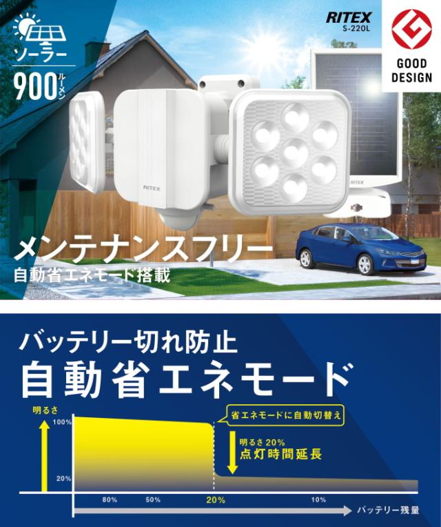 5W×2灯 フリーアーム式 LEDソーラーセンサーライト S-220L 送料無料 屋内 屋外 ソーラー式 自動省エネモード LED センサー ライト シンプル