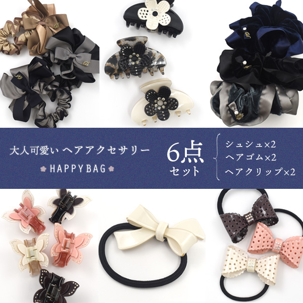 新春福袋 2021年 ヘアアクセ 6点セット シュシュ ミニクリップ リボンゴム 大人 可愛い 簡単 へアレンジ ヘアゴム ヘアアクセサリー 上品 大人女子 プチプレ 景品 レディース 大人可愛い かわいい オトナ女子 クラシカル フェミニン