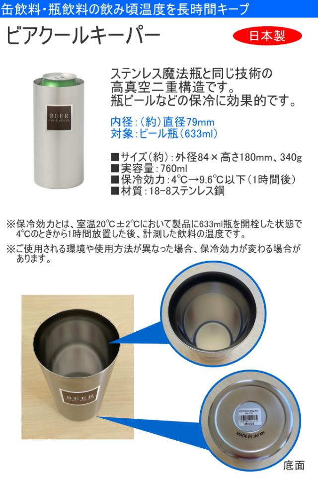 ビアクールキーパー BCK-800 日本製 ステンレス クールキーパー 真空二重構造 保冷 ビール瓶 飲み物 お酒 パーティー