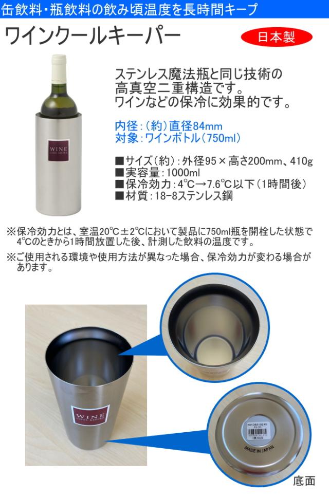 ワインクールキーパー WCK-1000 日本製 ステンレス 真空二重構造 保冷 ワインボトル ビール瓶 飲み物 お酒 パーティー