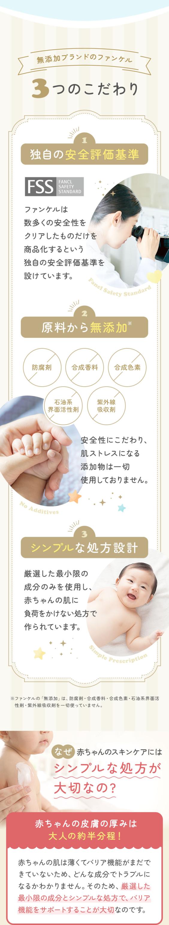 ファンケルの無添加 │ 防腐剤・合成香料・合成色素・石油系界面活性剤・紫外線吸収剤を一切使っていません。※弱酸性、製造年月日入。