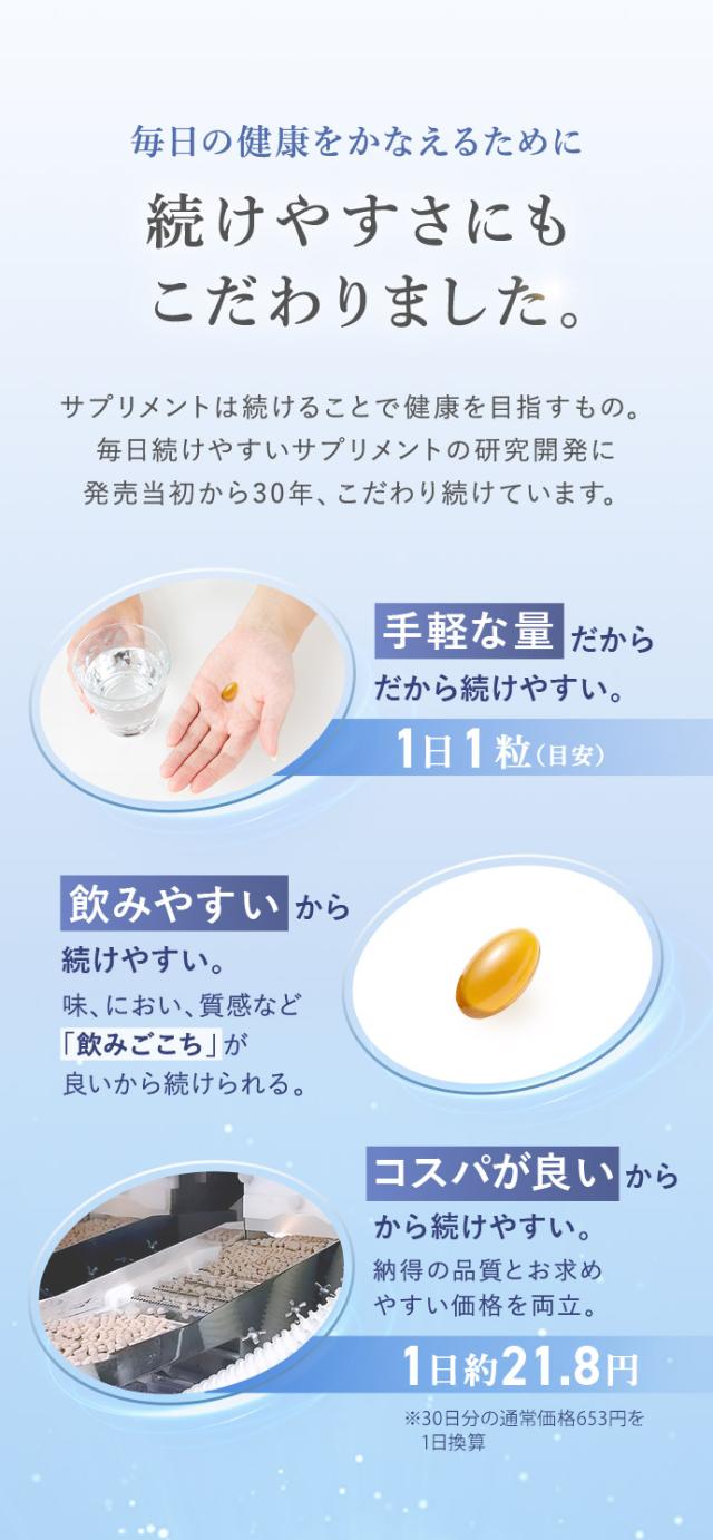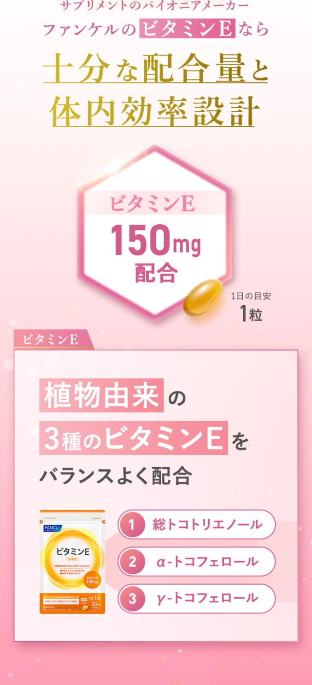 ビタミンE:150mg、総トコトリエノール:3mg、γ-トコフェロール:100mg