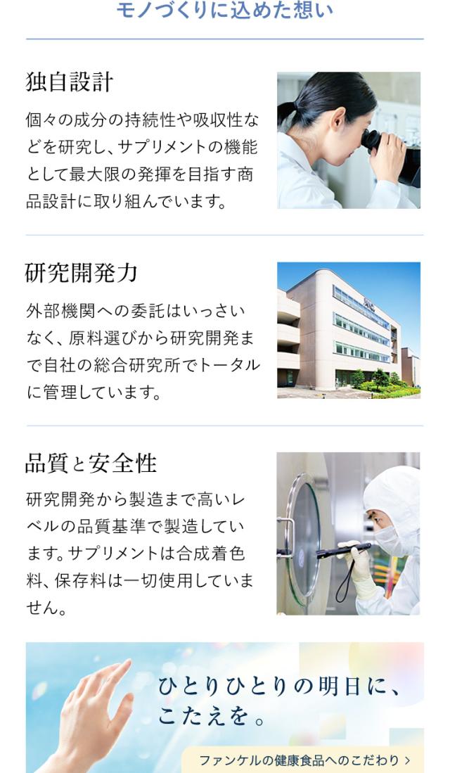 活性大豆サポニンB型:50mg、コエンザイムQ10:60mg、大豆イソフラボンアグリコン:20mg、HTCコラーゲン(トリペプチド高含有コラーゲンペプチド):900mg、ヒアルロン酸:10mg、ビタミンC:100mg