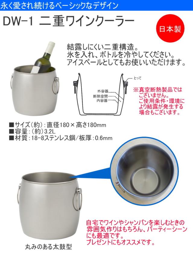 2重ワインクーラー 太鼓型 DW-1 日本製 ステンレス クーラー 保冷 ワインボトル ビール瓶 飲み物 お酒 便利 パーティー