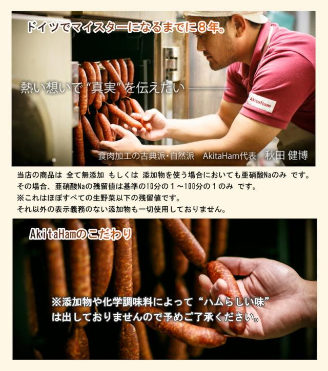 ●ドイツ国家認定ハム・ソーセージマイスターの店アキタハム。ドイツでマイスターになるまでに8年。昔も現在もそしてこれからも、真実を追求し続けます。