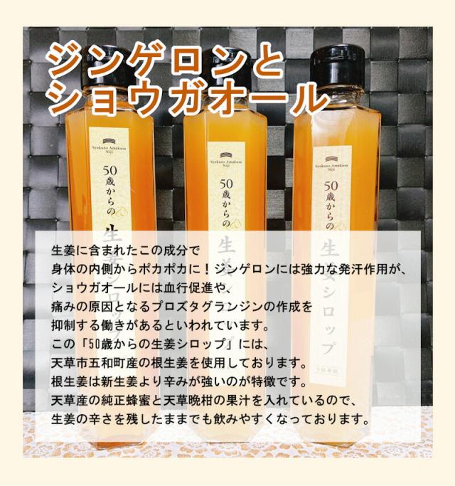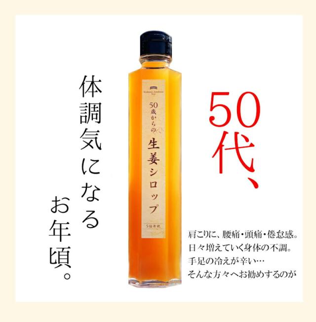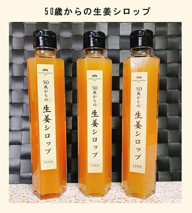●50歳からの生姜シロップよりも生姜が少なめで、晩柑果汁が多く入っています。
