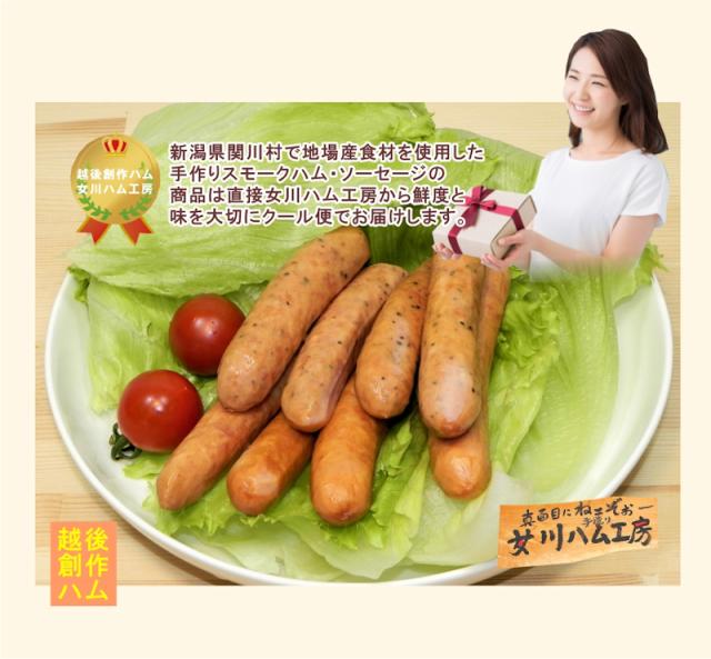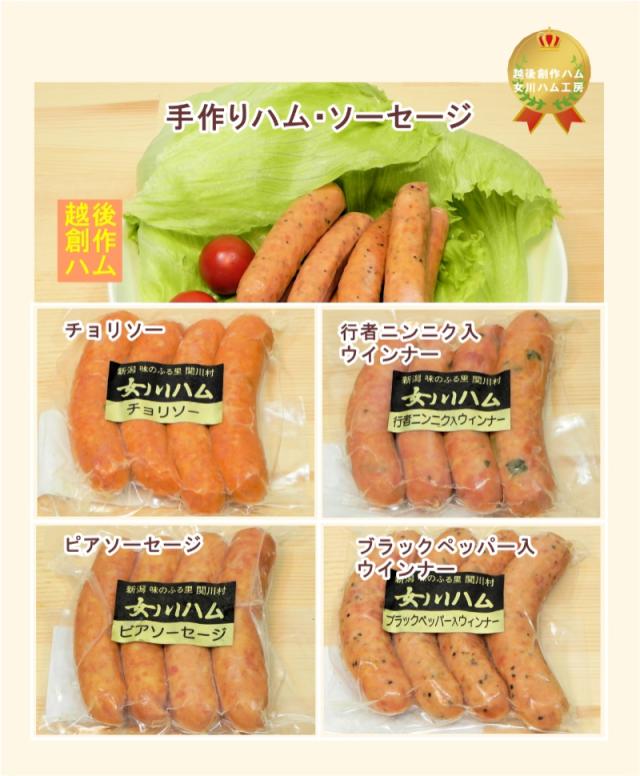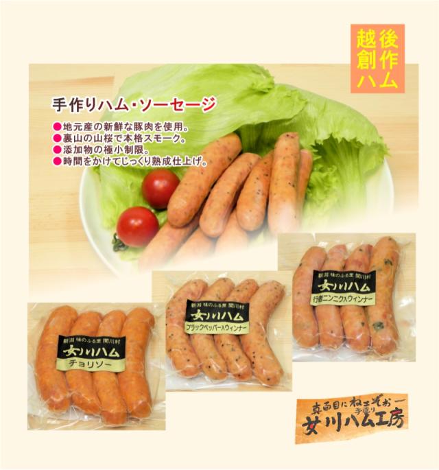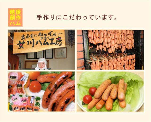 ●原材料:豚肉(新潟県産)、食塩、調味料(アミノ酸等)、発色剤(亜硝酸Na、硝酸k)リン酸塩(Na)、増粘多糖類、(原材料の一部に卵を含む)