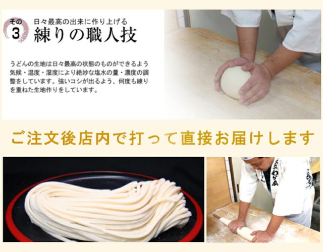 ●生うどんはご注文後店内で打ち立て麺をそのままわら家さんからお届けします。