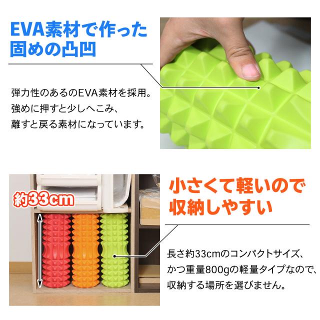 こちらのフォームローラーはEVA製のハードタイプなのでへたれにくい作りになっています。