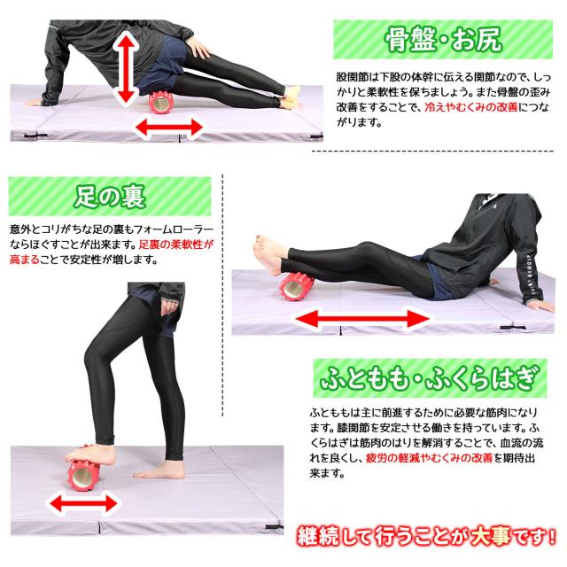 体の歪みをフォームローラーでリセット!慢性的なコリやむくみ、運動不足の方におすすめです。ジム、自宅でお手軽にセルフケアが出来ます。