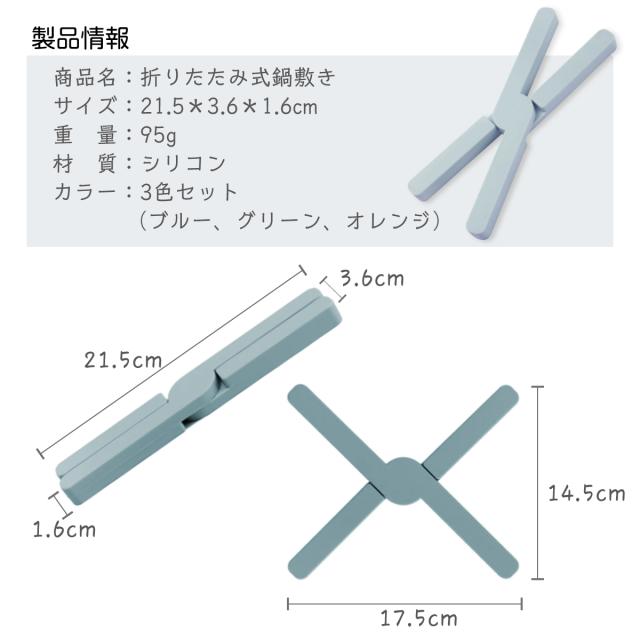 鍋敷き 折りたたみ式 3個セット シリコン おしゃれ 北欧 キッチン雑貨 ポットマット 鍋置き 便利グッズ pot-mat-02