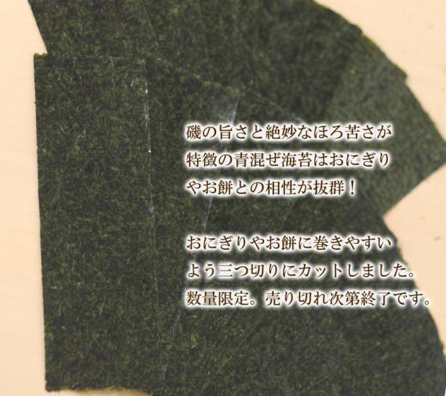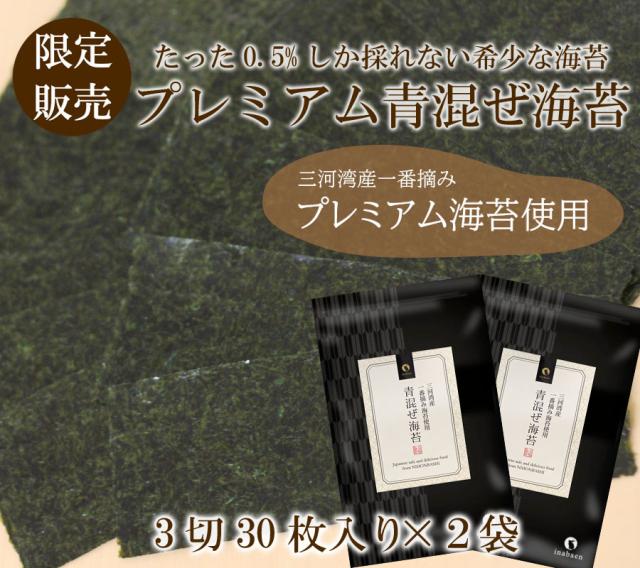海苔 青混ぜ海苔 3切30枚 2袋セット 三河湾産 一番摘み メール便送料無料 茶匠庵 焼のり ご飯のお供 おにぎり 国産 葉酸 タウリン 混ぜ海苔 青まざり こんのり 錦海苔