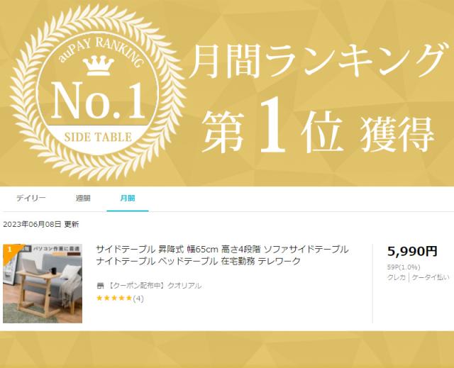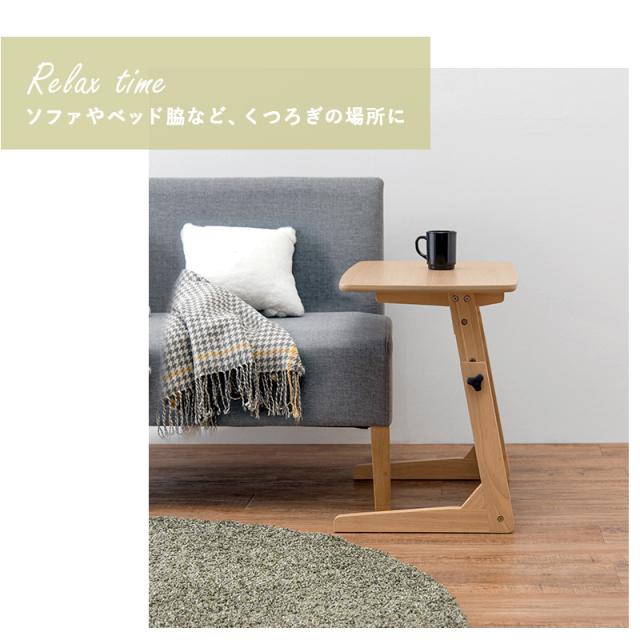 - ソファーのサイドテーブルを探していて目に留まり購入。テーブル部分が広く、高さ調整も出来るので、希望通りの商品で大変満足しています。作りもしっかりしています。