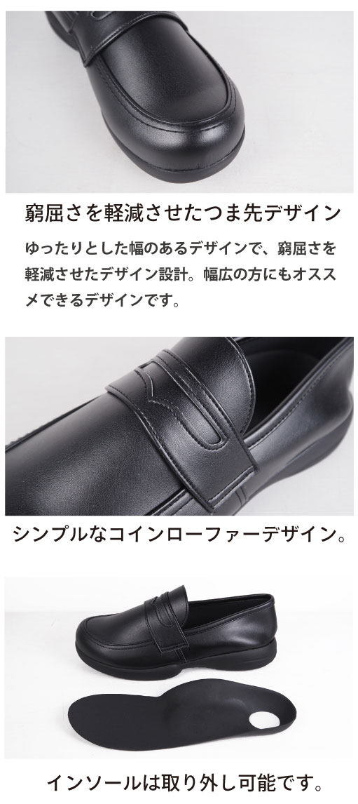コンフォートシューズ 健康靴 健康 シンプル デザイン コインローファー ペニーローファー スリッポン コンフォート 靴 Uチップ
