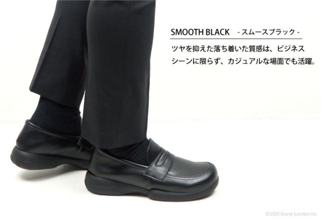 ■毎日忙しく動き回るビジネスマンのために誕生した特別なローファー。 片足約360g(Mサイズ)と軽量で、窮屈感の無いゆったりとした履き心地に仕上げています。 アッパーは着脱が簡単なコインローファーデザイン。忙しい時や脱ぎ履きが多い時に便利です。 選べる2素材でビジネスだけでなく、カジュアルファッションにも合わせやすい一足です。
