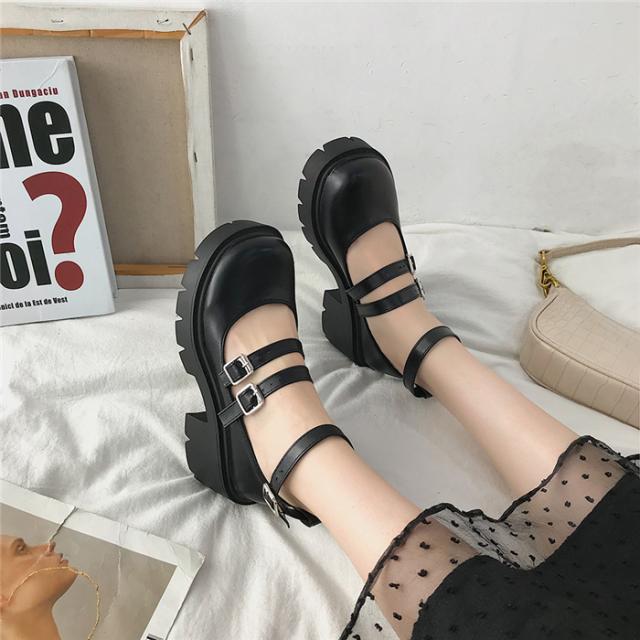6.5cmアップ 厚底パンプス ストラップパンプス 黒 ブラック レディース 厚底靴 パンプス 前厚 シンプル カジュアル シューズ ヒールアップ ロリータ靴