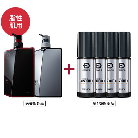 第1類医薬品 スカルプD メディカル ミノキ 5プレミアム×4本 + スカルプD シャンプー + ボリュームパックコンディショナー オイリーセット 脂性肌用