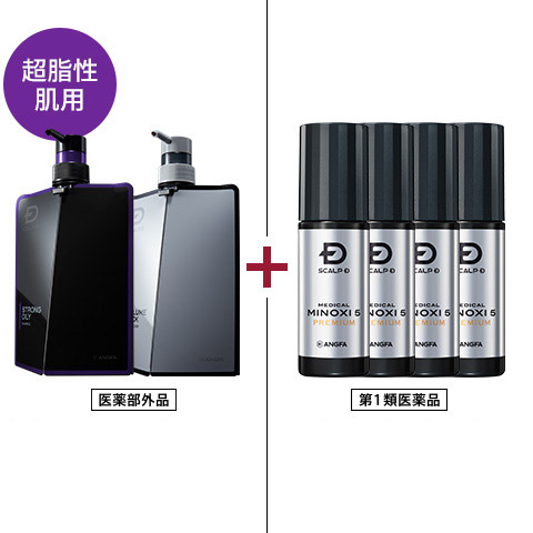 第1類医薬品 スカルプD メディカル ミノキ 5プレミアム×4本 + スカルプD シャンプー + ボリュームパックコンディショナー ストロングオイリーセット 超脂性肌用