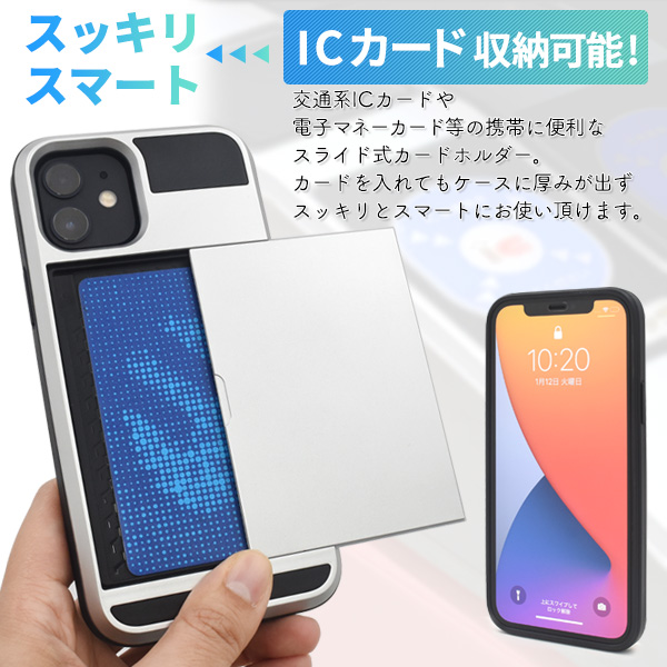 スマートフォンケース iPhone12 iPhone12Pro用 ICカード収納可能 スマホケース スライド式 カードホルダー付き 携帯ケース 無地 お洒落 スマホカバー 装着簡単 背面保護 シンプル カジュアル メタリック風 上品 バックカバー スマホケース スマホカバー SoftBank au docomo