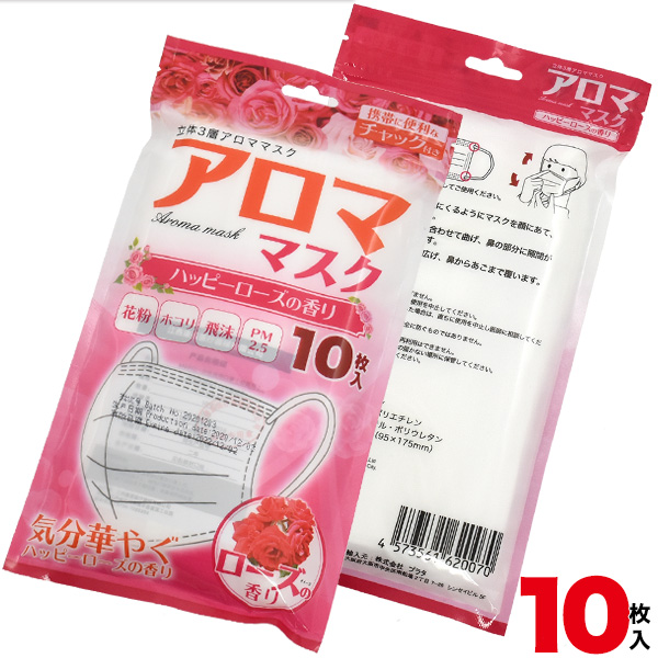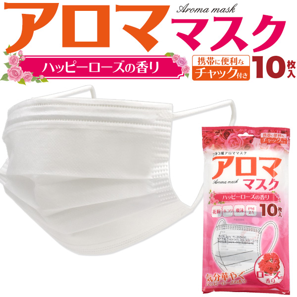 訳あり品 マスク 10枚入り 使い捨て アロママスク ハッピーローズ 不織布 立体3層 ますく 大人用 香り付き アロマ ローズ 感染予防 ウイルス対策 消耗品 飛沫対策 花粉 風邪予防 通勤 通学 移動 接客 業務用 会社 男女兼用 埃 乾燥 花粉症 アレルギー お試し ポイント消化