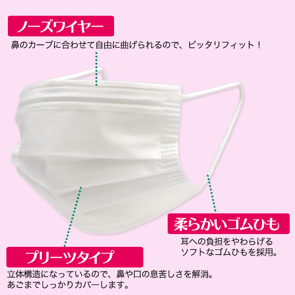 ●本品は有害ガスや有害な粉塵の侵入は防げません。●マスクの臭いで気分が悪くなった場合は、使用を中止してください。●万が一かゆみ、かぶれ等、肌に異常が生じた場合は、直ちに使用を中止し医師に相談してください。●このマスクは感染による疾病のリスクを完全に防ぐものではありません。●火気のそばでの使用はお止めください。●本品は使いきりマスクです。洗濯などでの再利用はできません。●高温、多湿、直射日光を避け、乳幼児の手の届かない場所に保管してください。●使用後は地方自治体の区分に従って捨ててください。