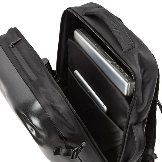 背面側にはクッション素材を内蔵したラップトップスリーブを配置。