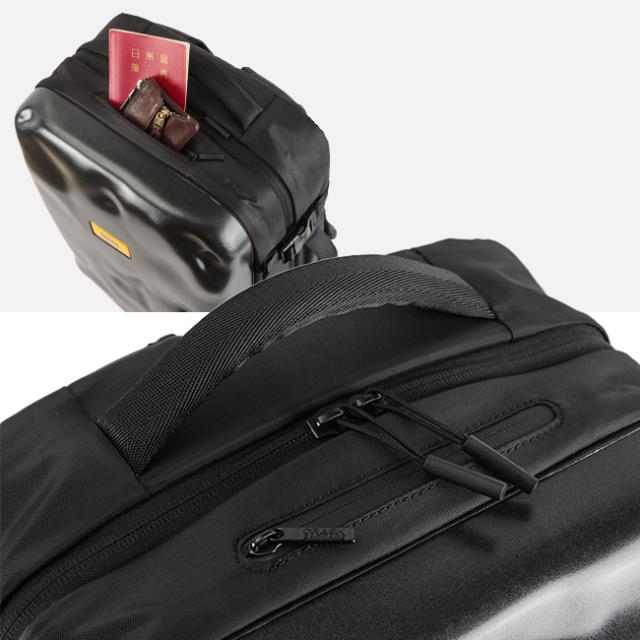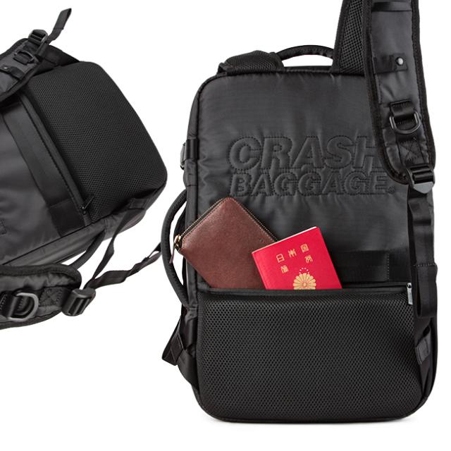 トラベルアイテムを得意とするクラッシュバゲージのバックパック。セキュリティ面でも安心な背面ポケットを装備しています。
