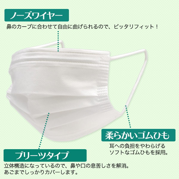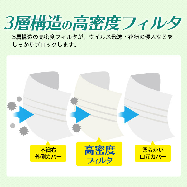 ●本品は有害ガスや有害な粉塵の侵入は防げません。●マスクの臭いで気分が悪くなった場合は、使用を中止してください。●万が一かゆみ、かぶれ等、肌に異常が生じた場合は、直ちに使用を中止し医師に相談してください。●このマスクは感染による疾病のリスクを完全に防ぐものではありません。●火気のそばでの使用はお止めください。●本品は使いきりマスクです。洗濯などでの再利用はできません。●高温、多湿、直射日光を避け、乳幼児の手の届かない場所に保管してください。●使用後は地方自治体の区分に従って捨ててください。